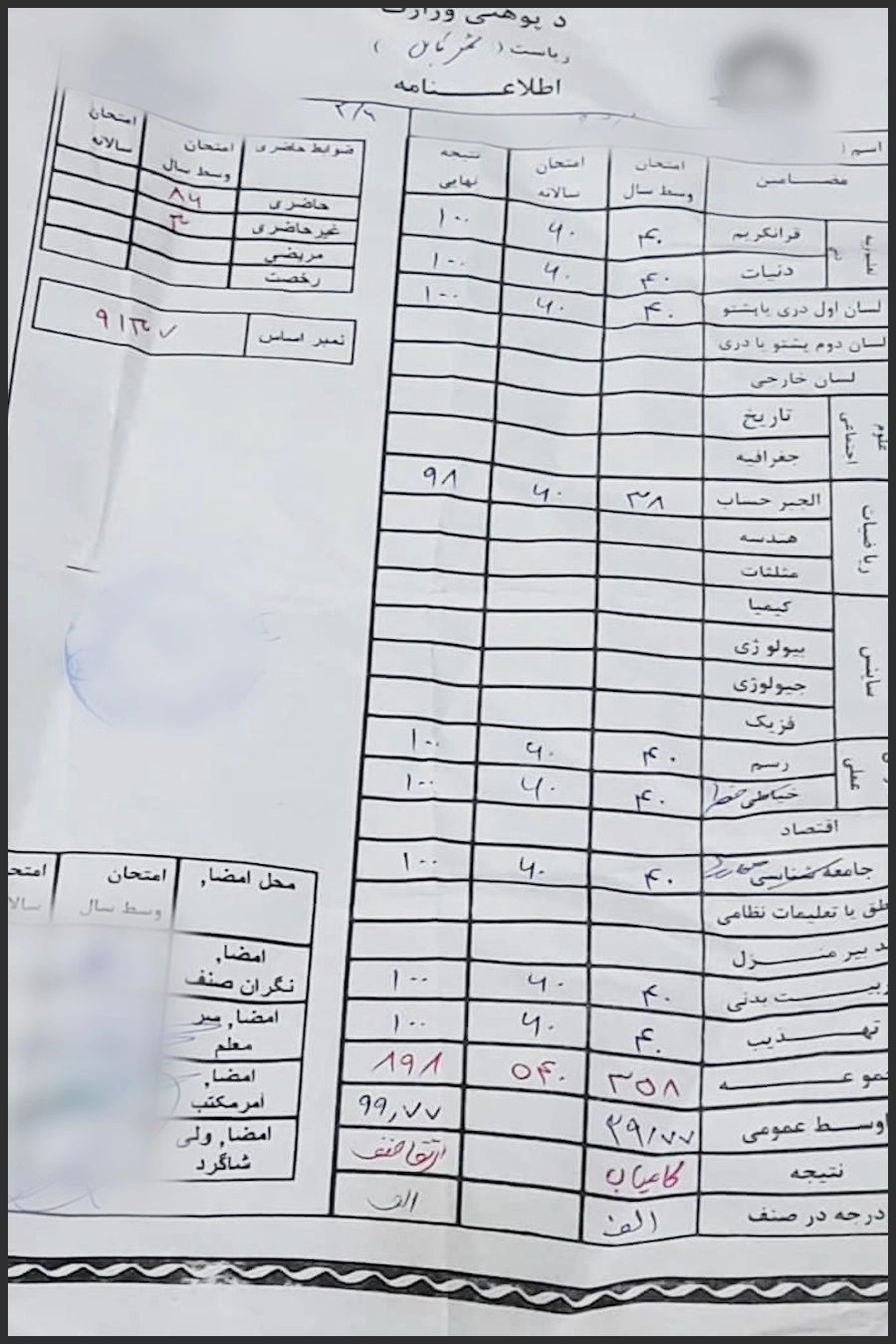 په درېیم ټولګي کې د لاله د نمرو پارچه