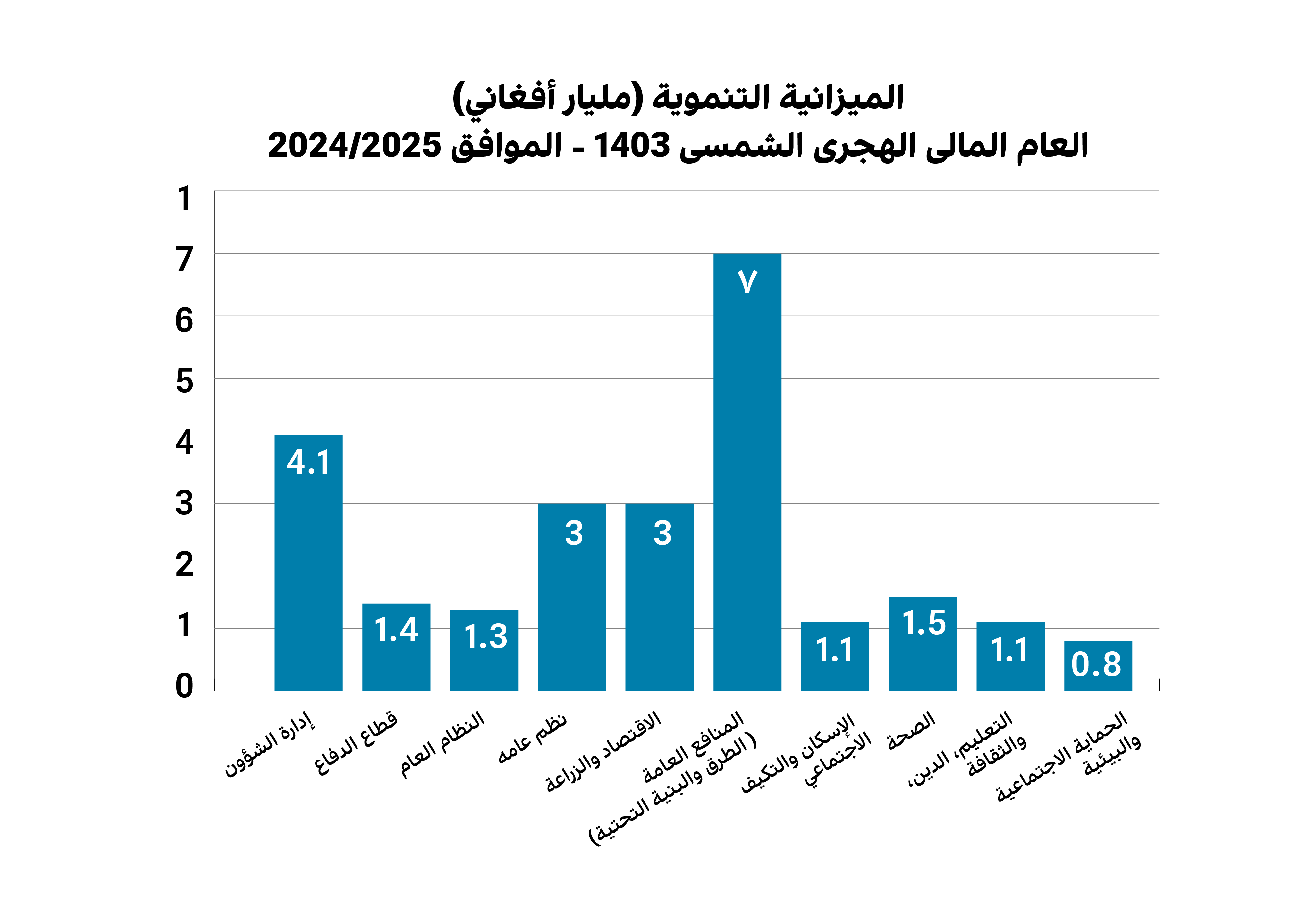 يُظهر هذا الرسم البياني نمط أولويات طالبان في توزيع الميزانية الإنمائية على القطاعات المختلفة. ويبرز تحليل البيانات عدداً من النقاط الأساسية:
