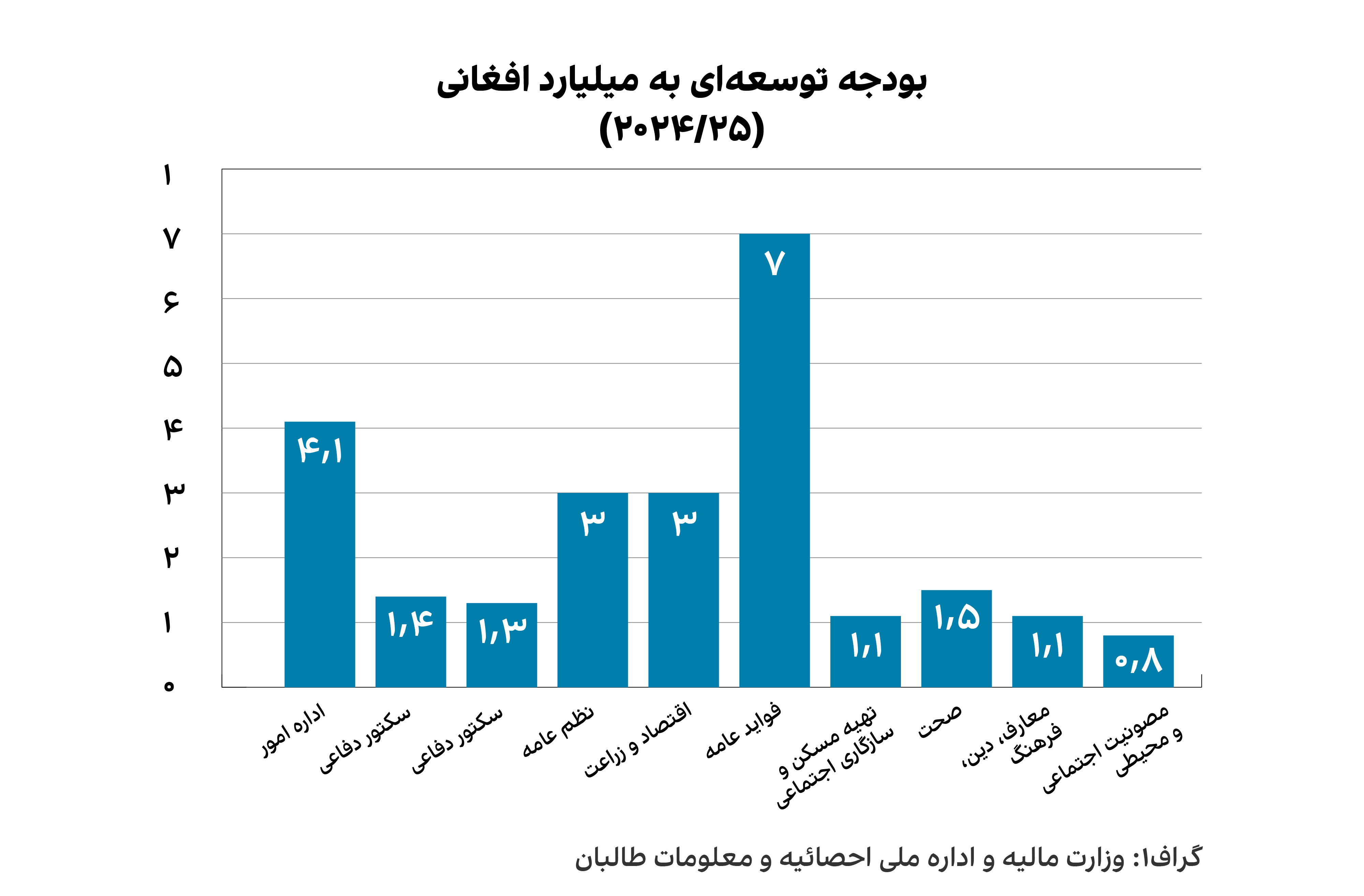 افزون بر این، حمدالله فطرت معاون سخنگوی طالبان اعلام کرده است که کمیسیون تدارکات این گروه در سال ۲۰۲۵ میلادی پروژههای توسعهای به ارزش ۱۳۰ میلیارد افغانی را تصویب کرده است. هنوز مشخص نیست که آیا این رقم شامل سهماه نخست سال ۲۰۲۵ – که عملا بخشی از سال مالی ۱۴۰۳ خورشیدی محسوب میشود – نیز هست یا خیر. با توجه به الگوی تخصیص بودجه طالبان در چهار سال گذشته، به نظر میرسد که در سال ۲۰۲۵ نیز پروژههایی به ارزش میلیاردها افغانی تصویب شده باشند که عملا فاقد پشتوانه مالی واقعی هستند.